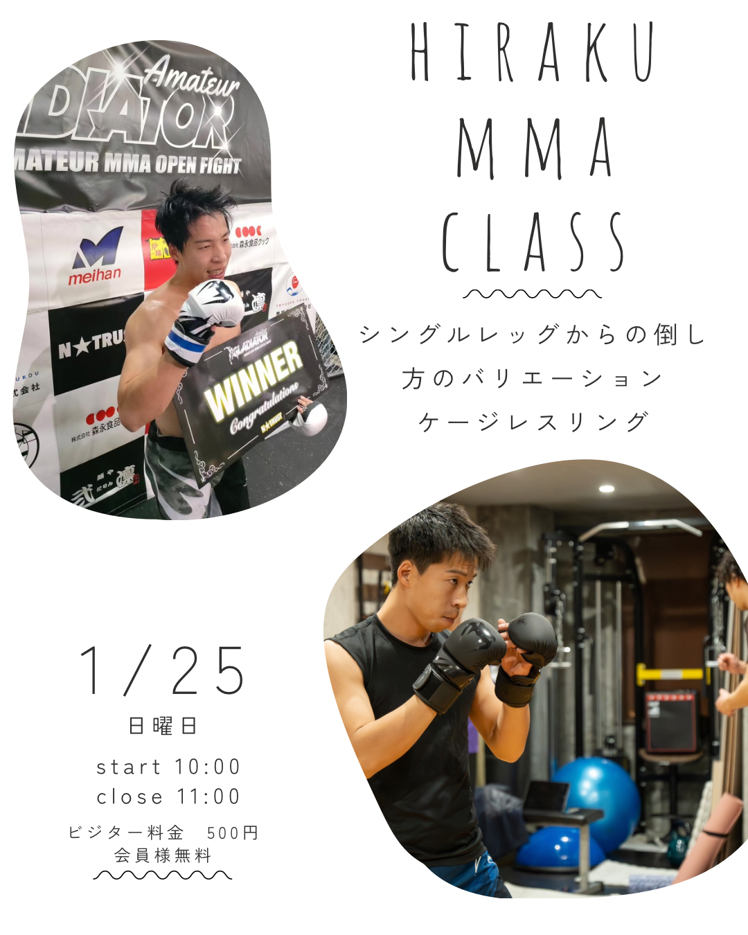 実戦で使える「倒し方」を習得するチャンス! 1月25日(日)の特別クラスでは、シングルレッグからの多彩なテイクダウンバリエーションと、ケージレスリングの基本から応用までを徹底解説します。